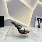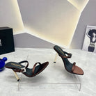SL CRYSTAL BUCKLE HIGH HEELS BROWN SATIN