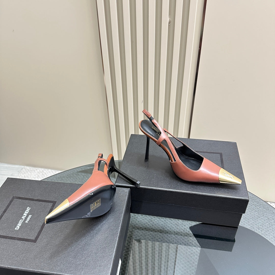 SL JEANNE SLINGBACK PUMPS BRICK CALFSKIN