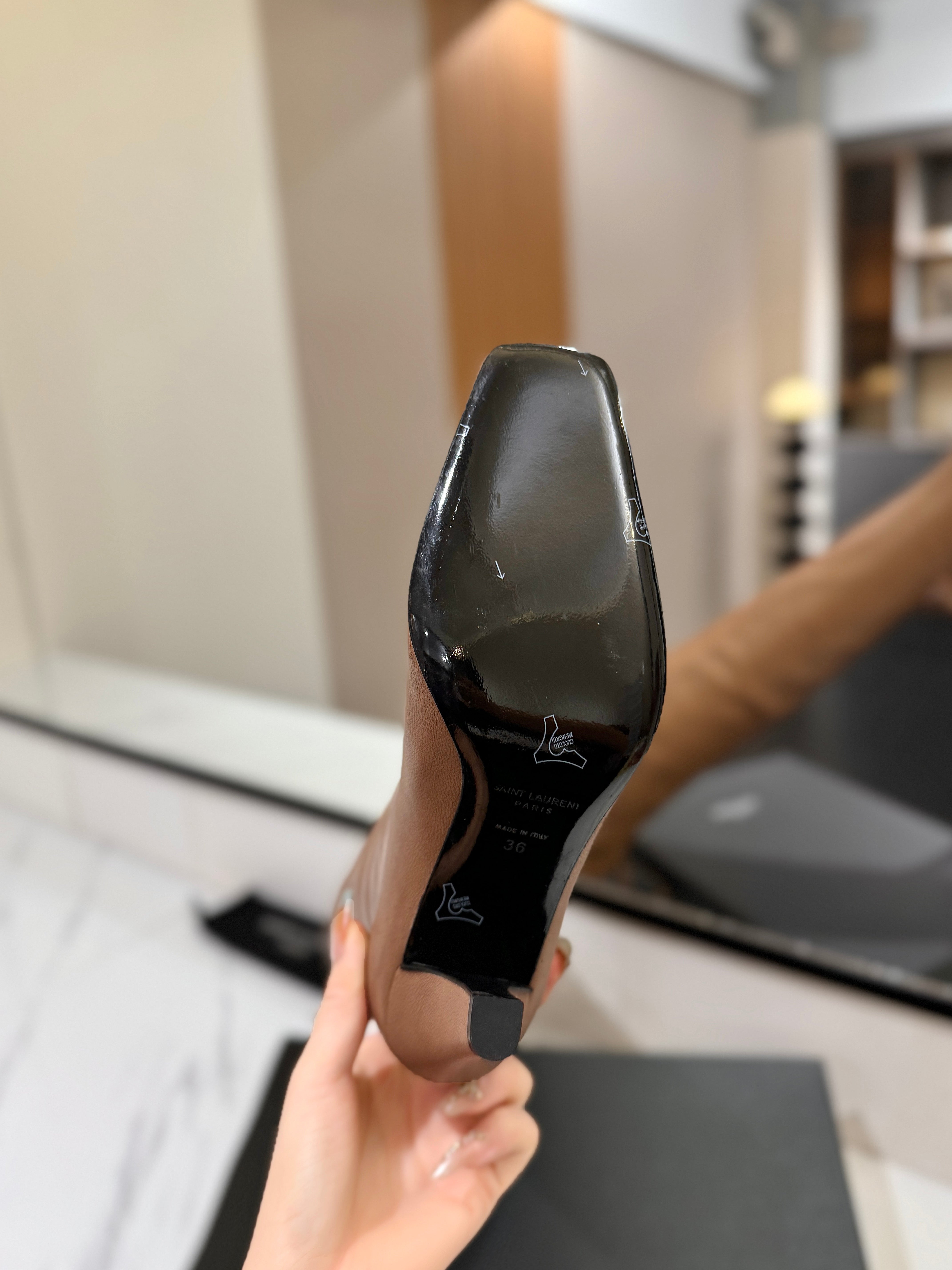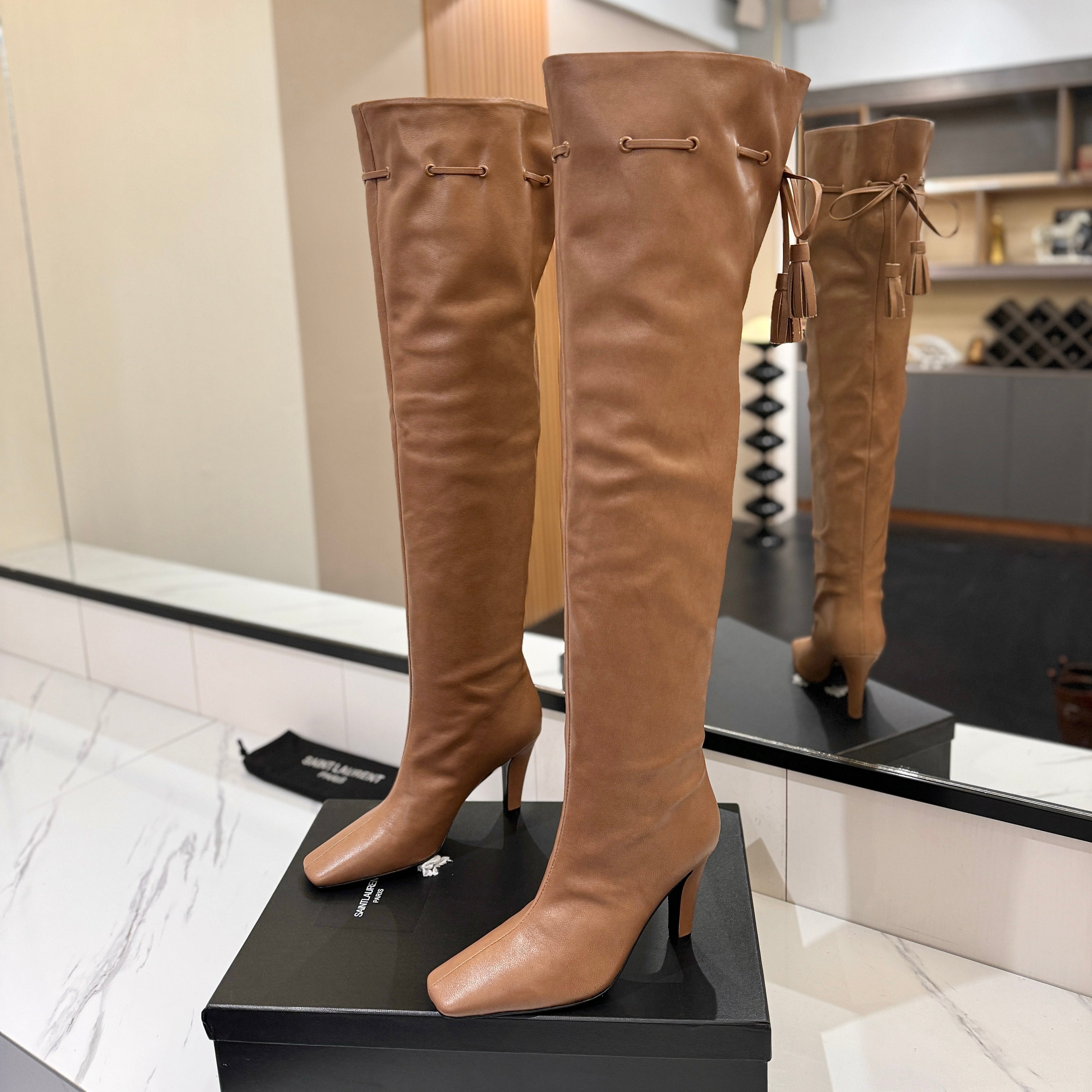 YSL 25 Over-the-Knee Martin Boot Light Brown Calfskin 520781