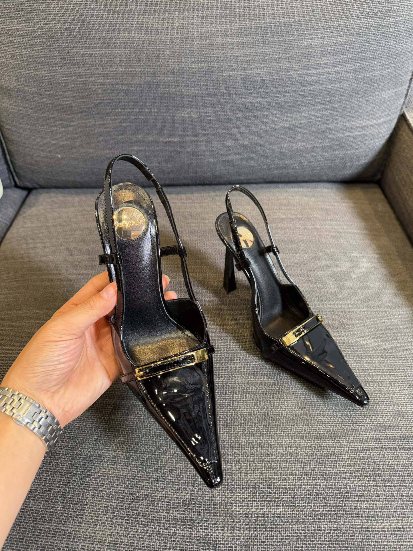 JACQUELINE SLINGBACK PUMPS IN BLACK PATENT LAMBSKIN
