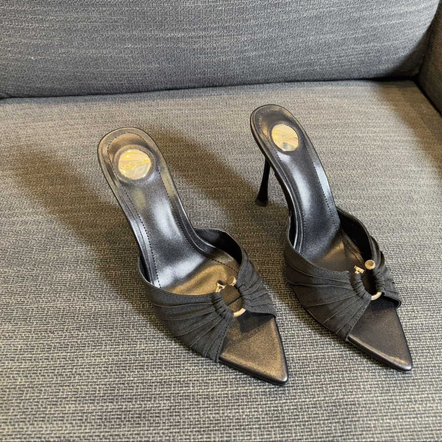 LOLA HIGH MULES IN BLACK SMOOTH LAMBSKIN AND DRAPED JERSEY