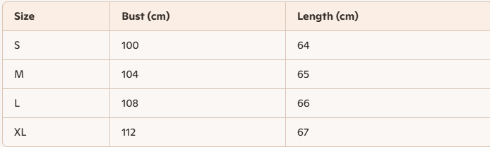 - For more information, please see the size guide below