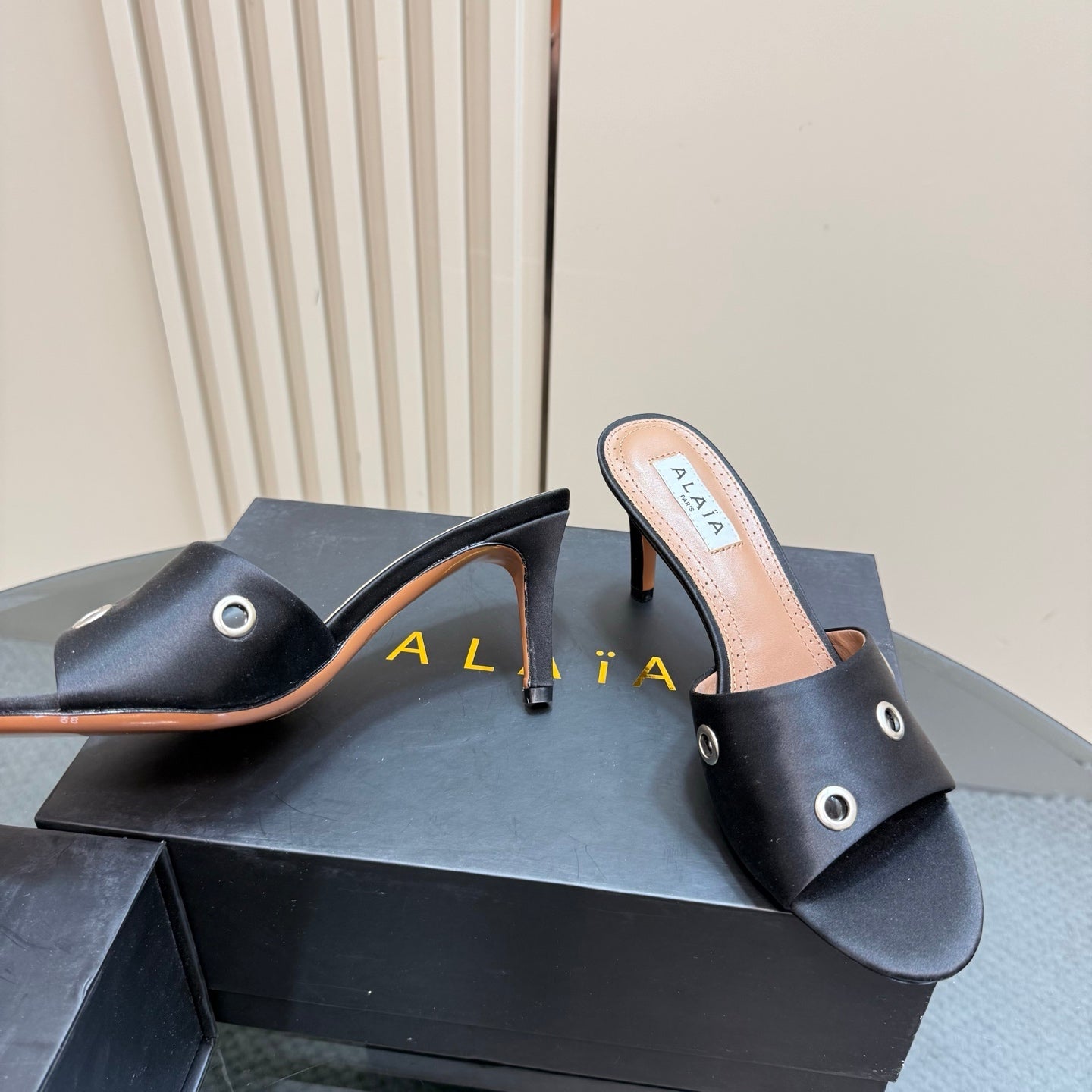 Alaia 2025 Oeillets Embellished Leather Sandals Black Lambskin 299669