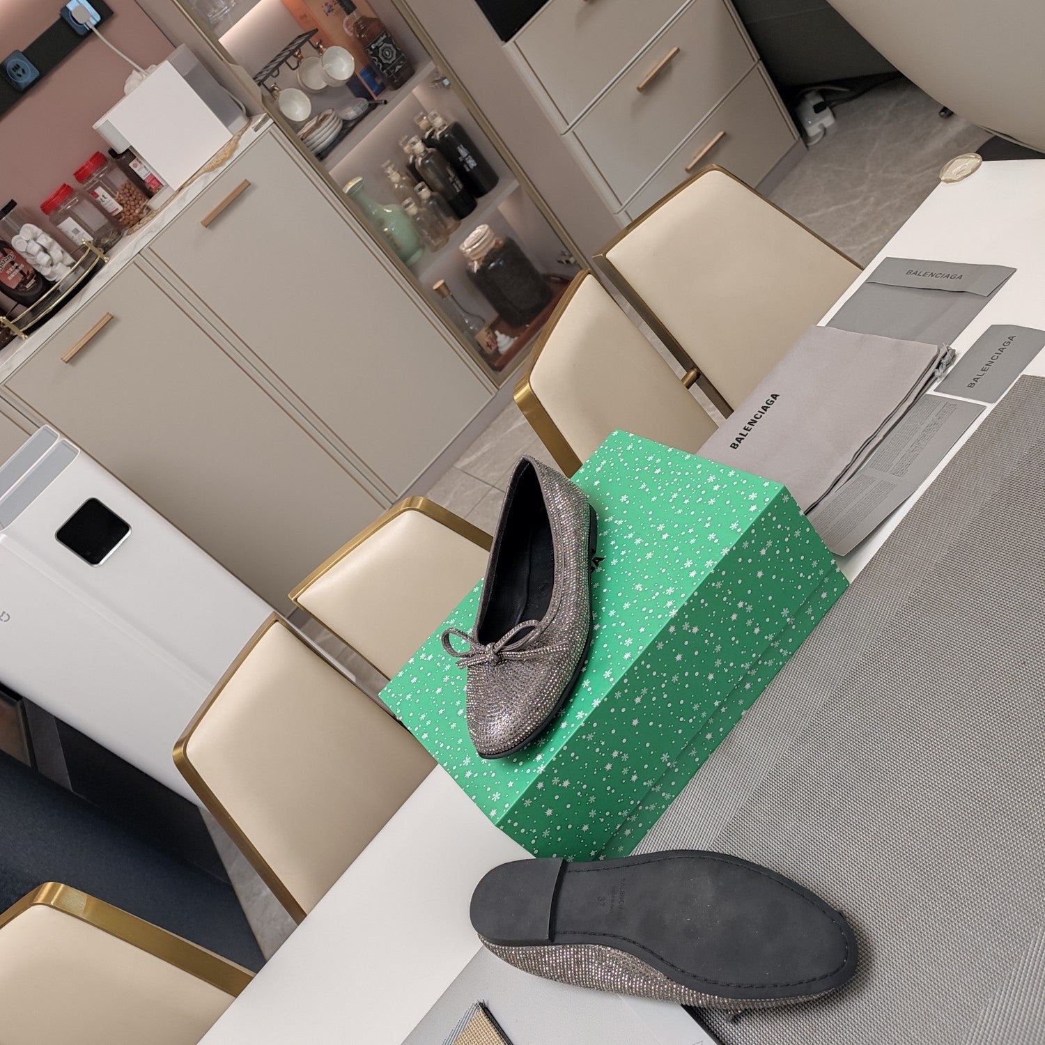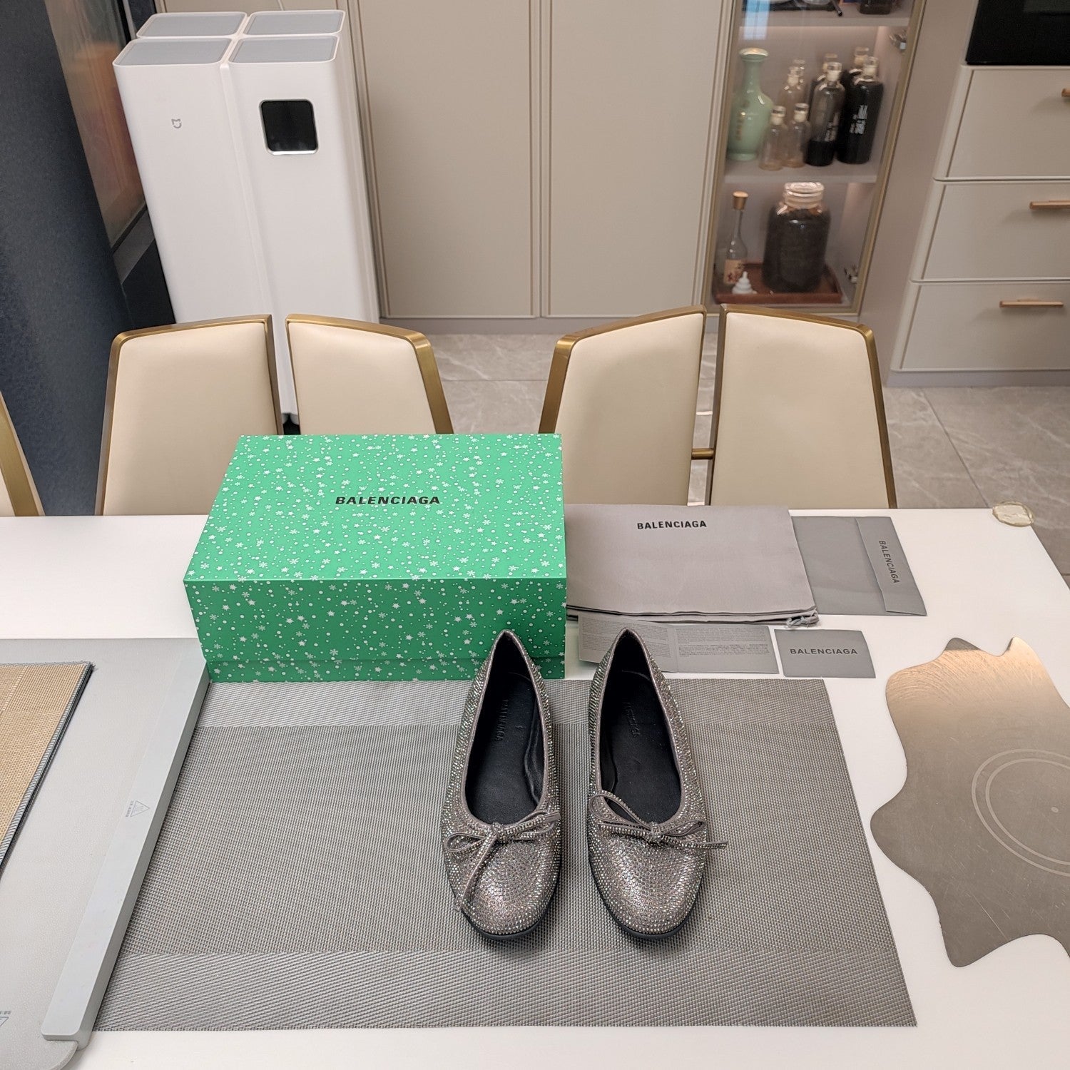 Balen 25 bow ballet flat attached rhinestones in grey calfskin 184484