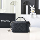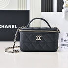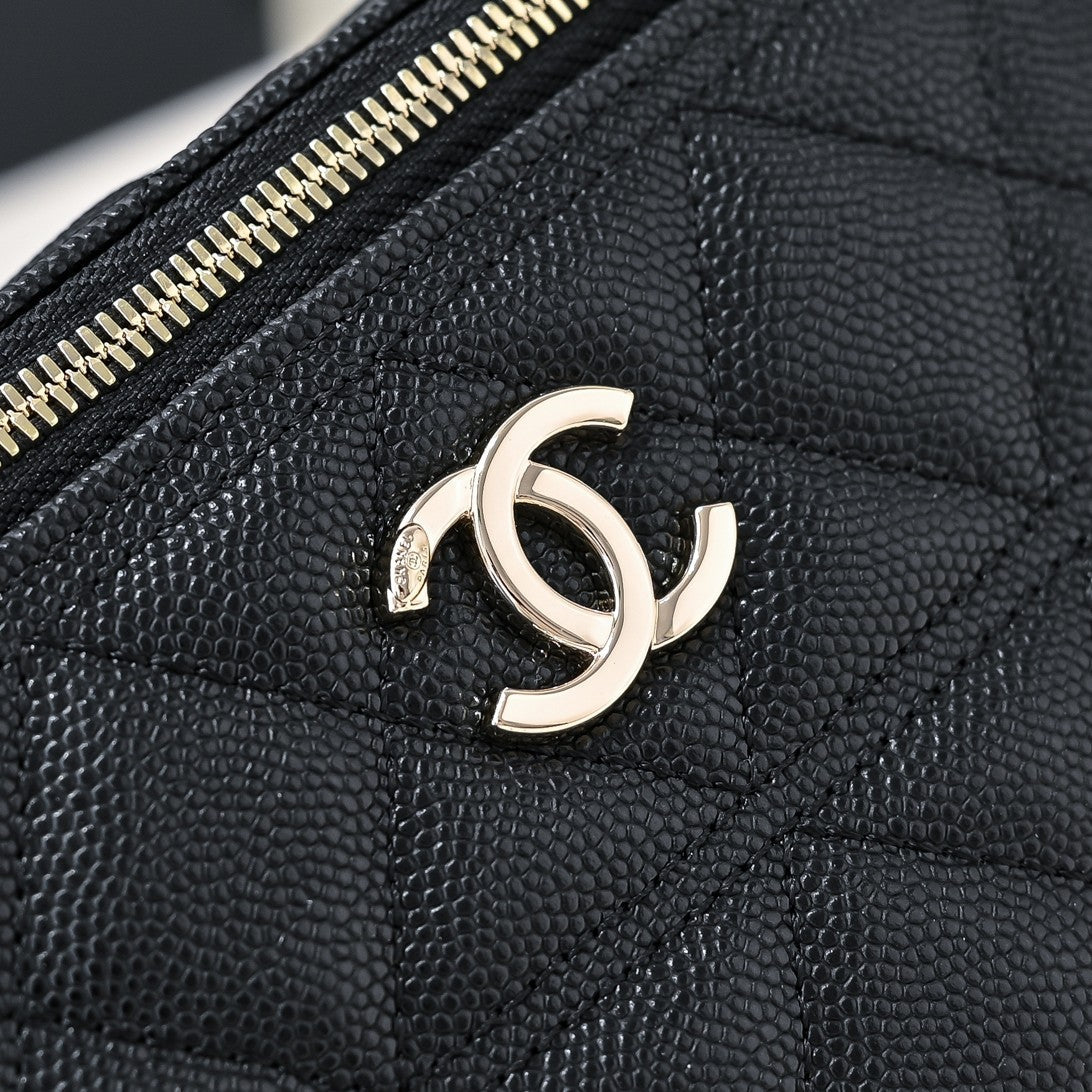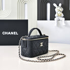 CC 25C Vanity Top Handle 17cm Black Grained Calfskin Light Gold Hardware