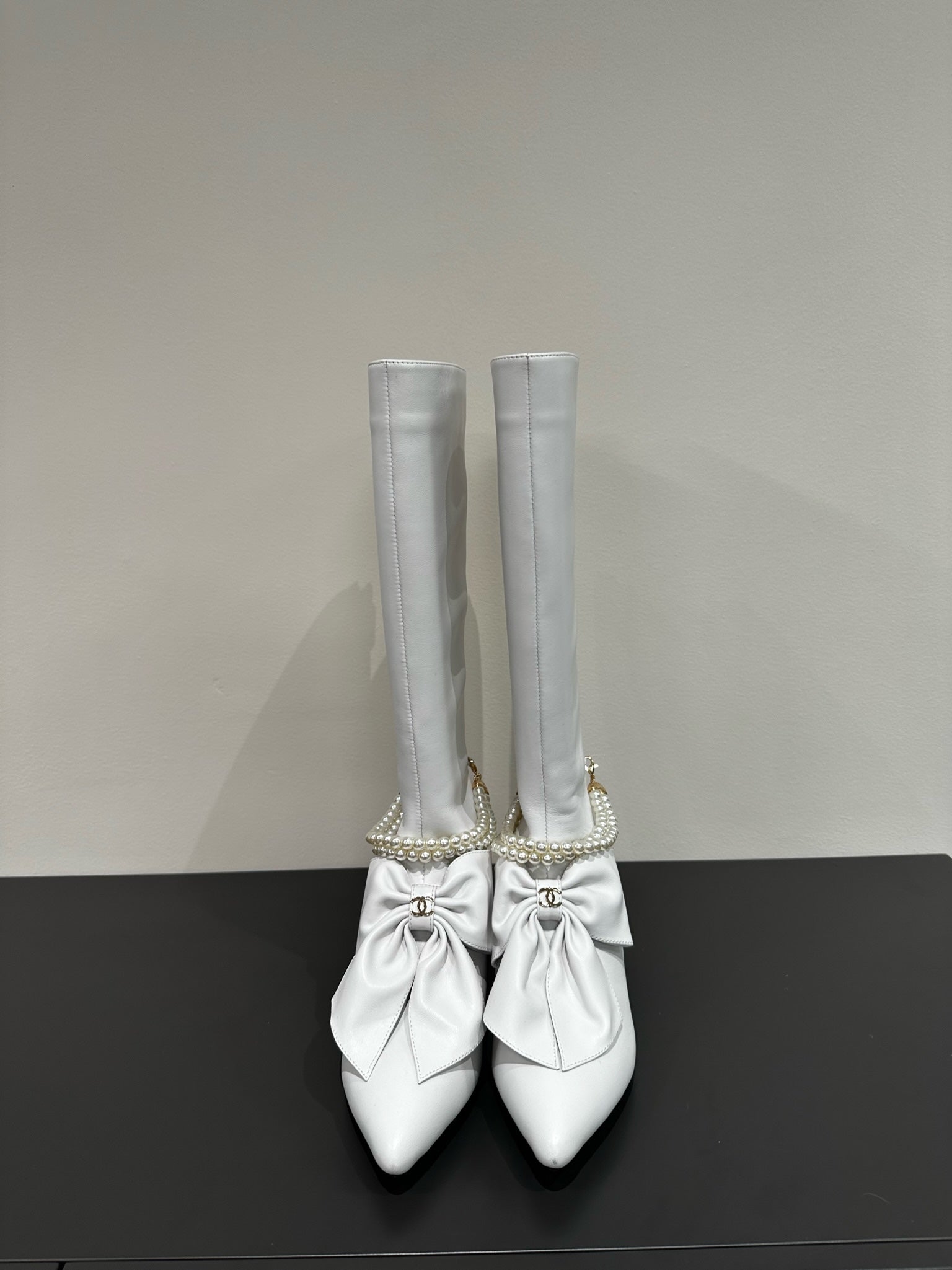 CC High Boots White Bow Tie Cowhide