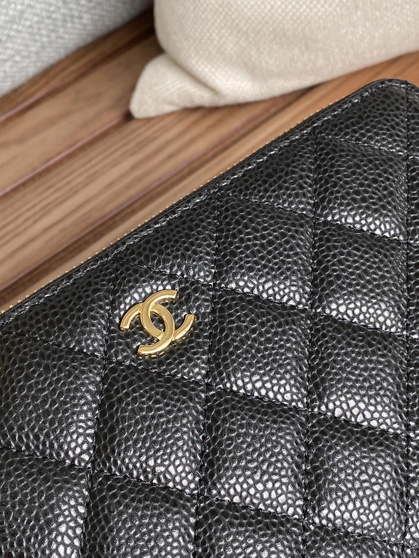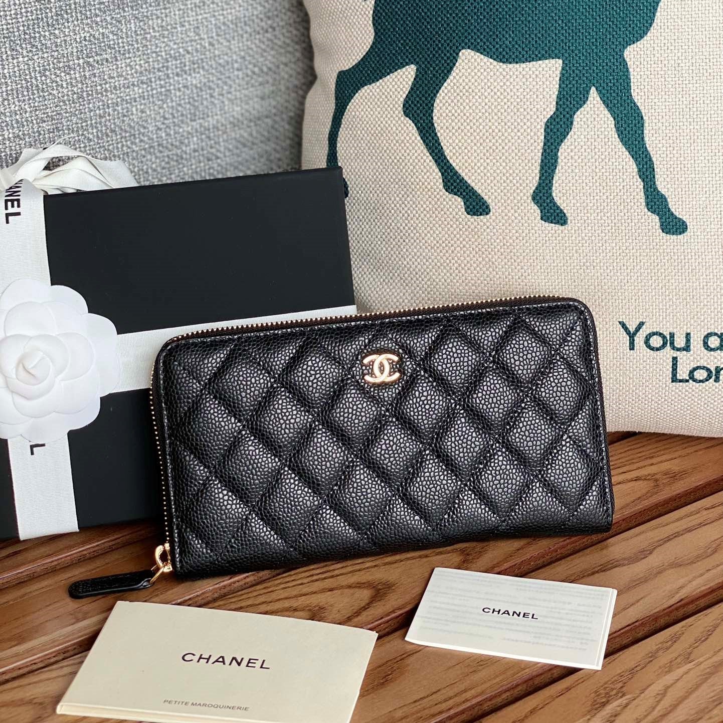 CC Zippy Long Wallet 19.5cm Black Caviar GHW 223945