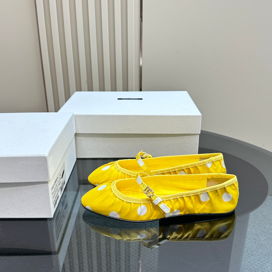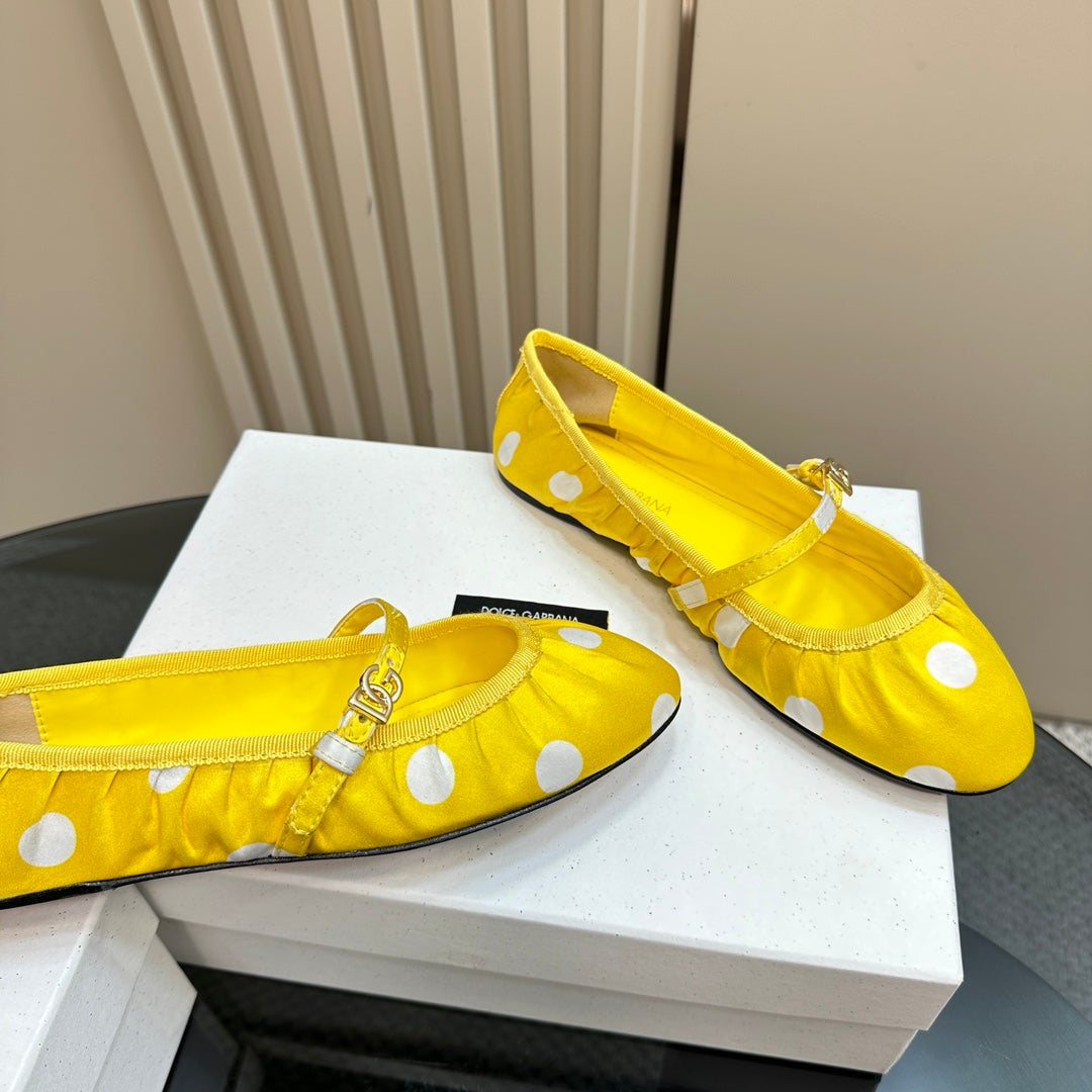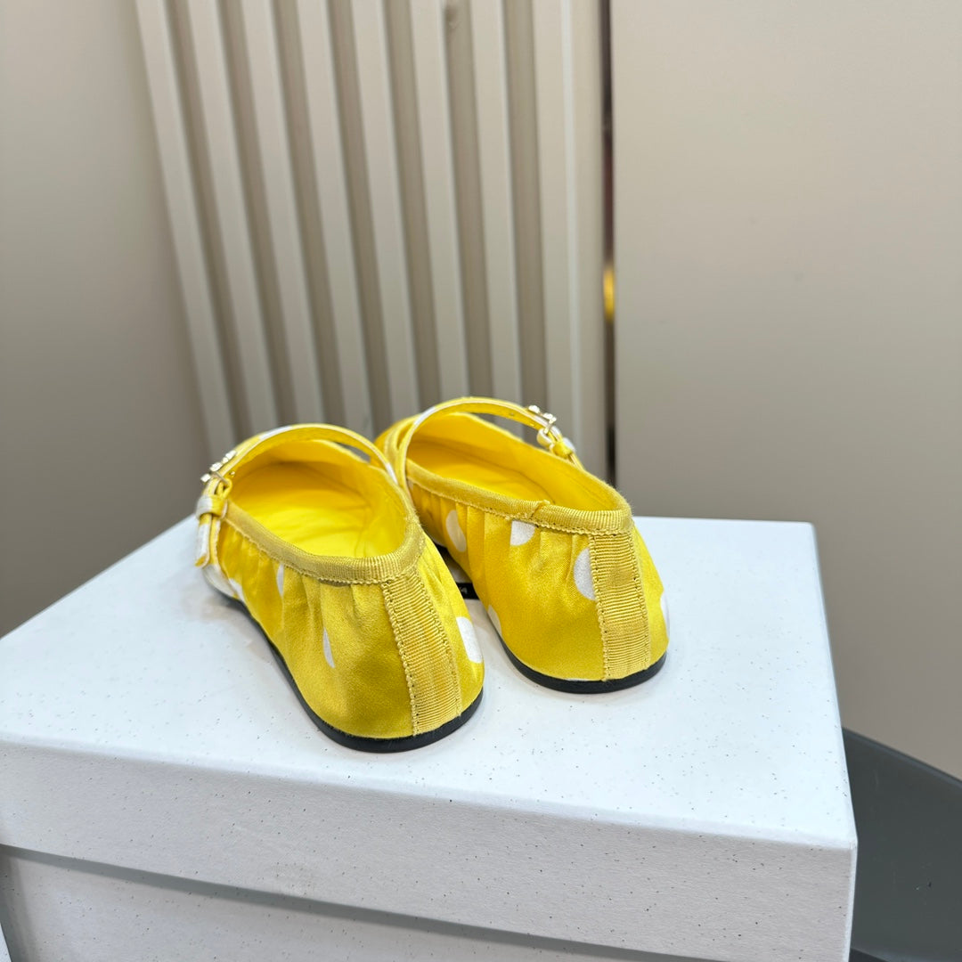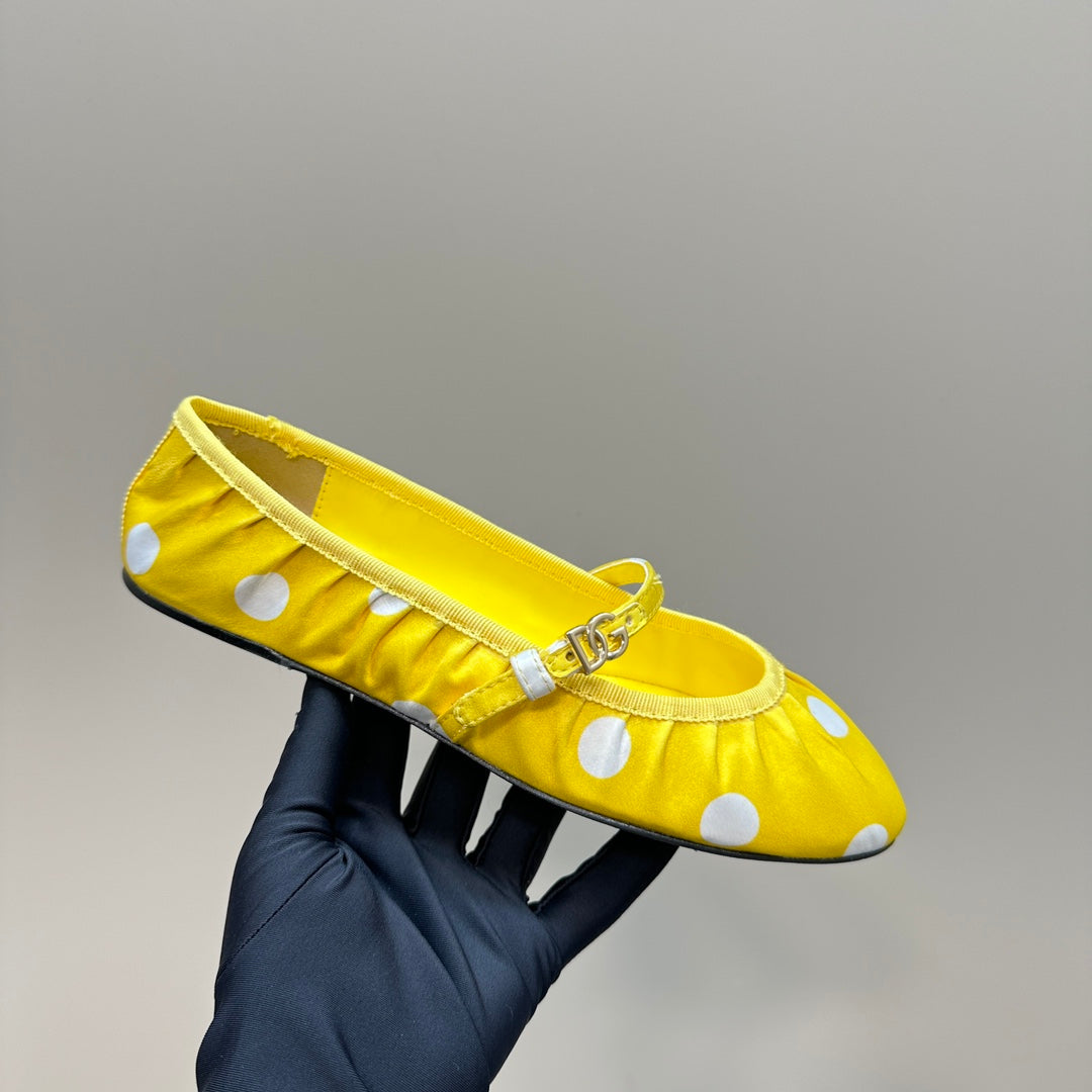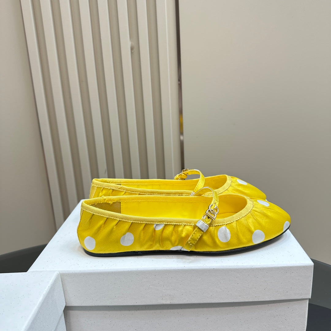 DC Polka-Dot Ballet Flats Yellow White Sheepskin & Silk 999236