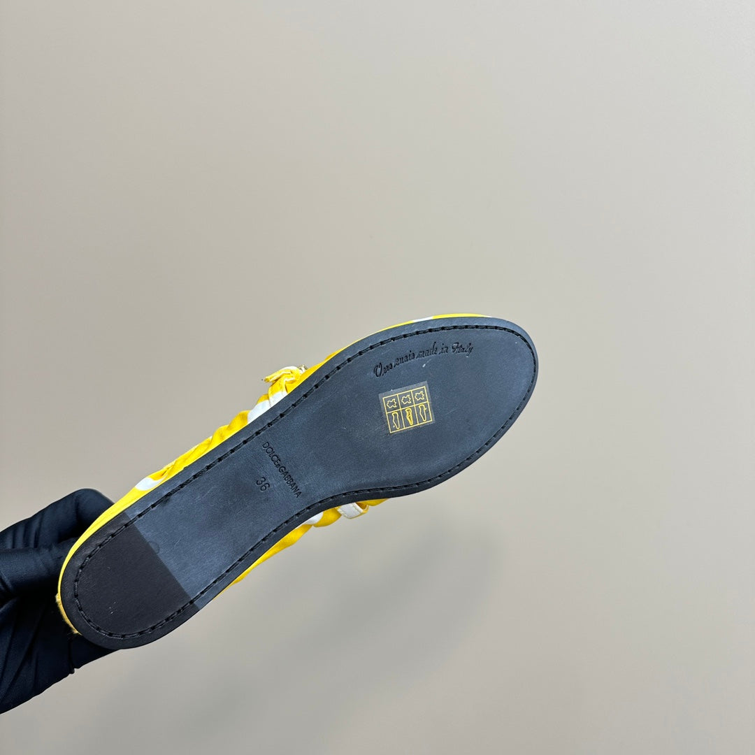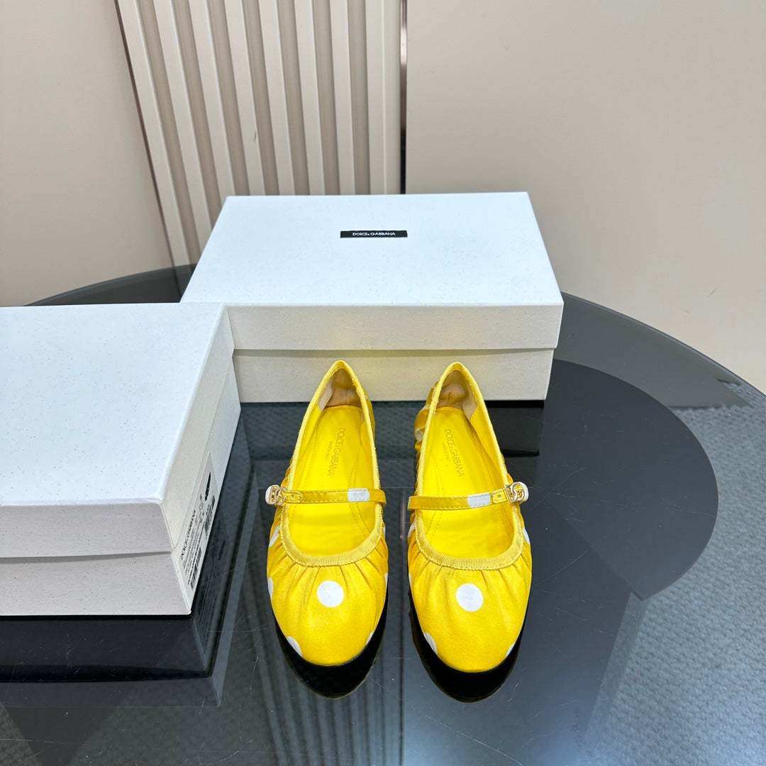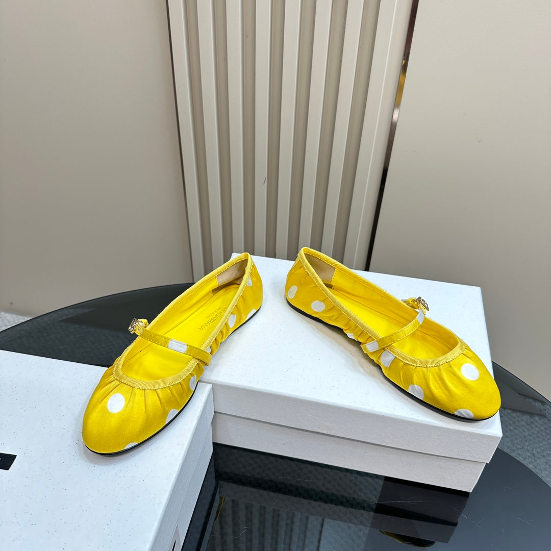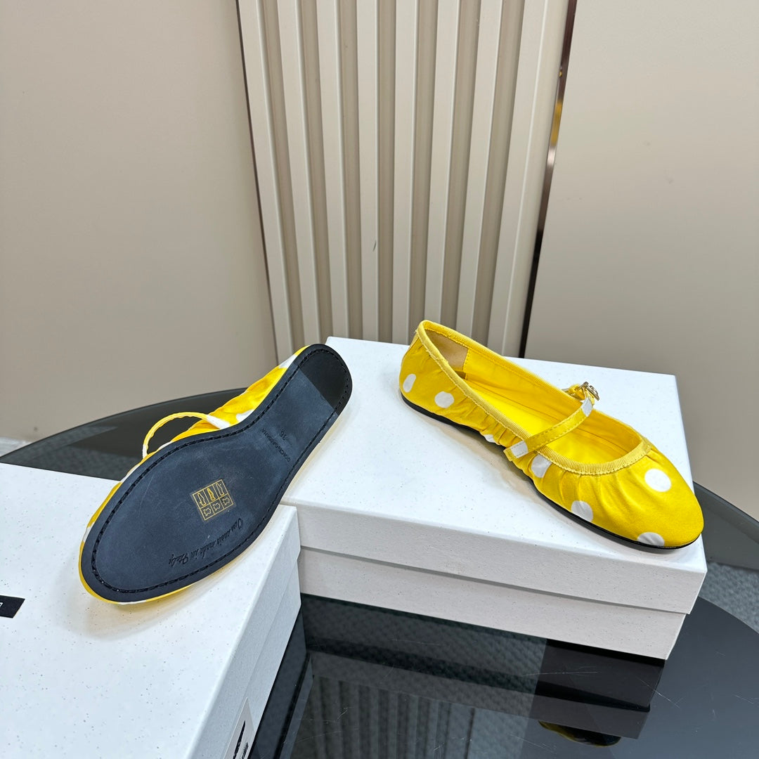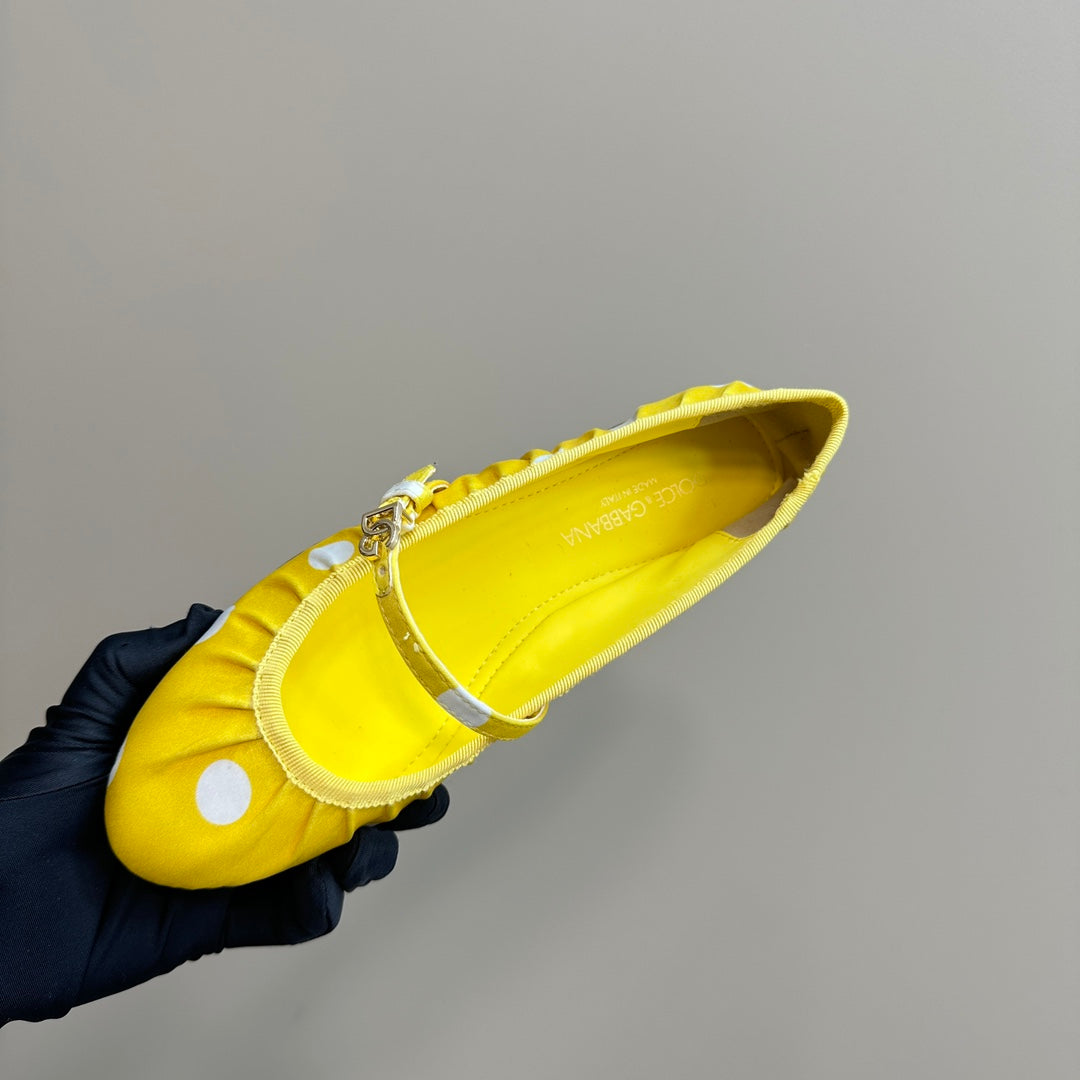 DC Polka-Dot Ballet Flats Yellow White Sheepskin & Silk 999236
