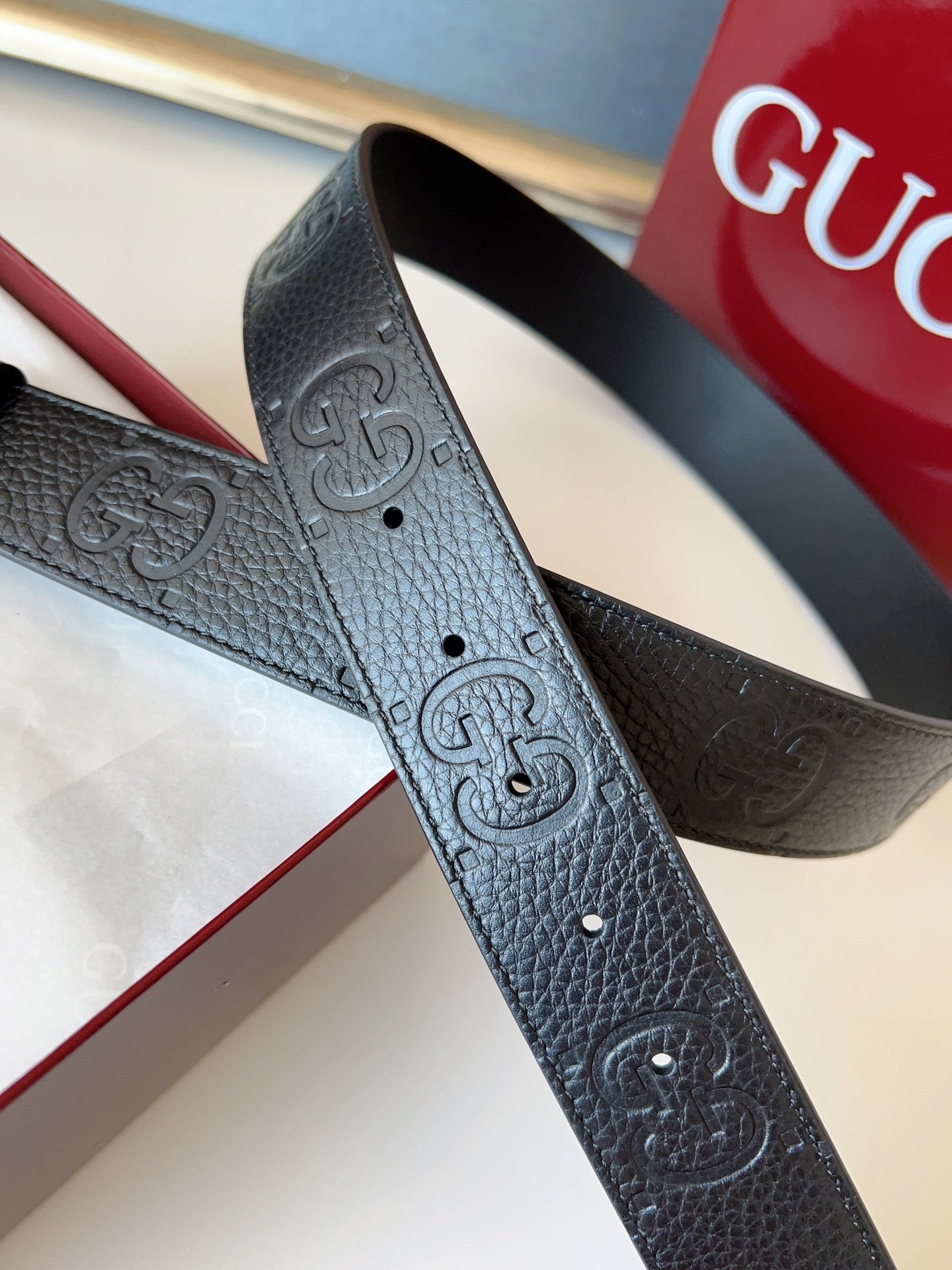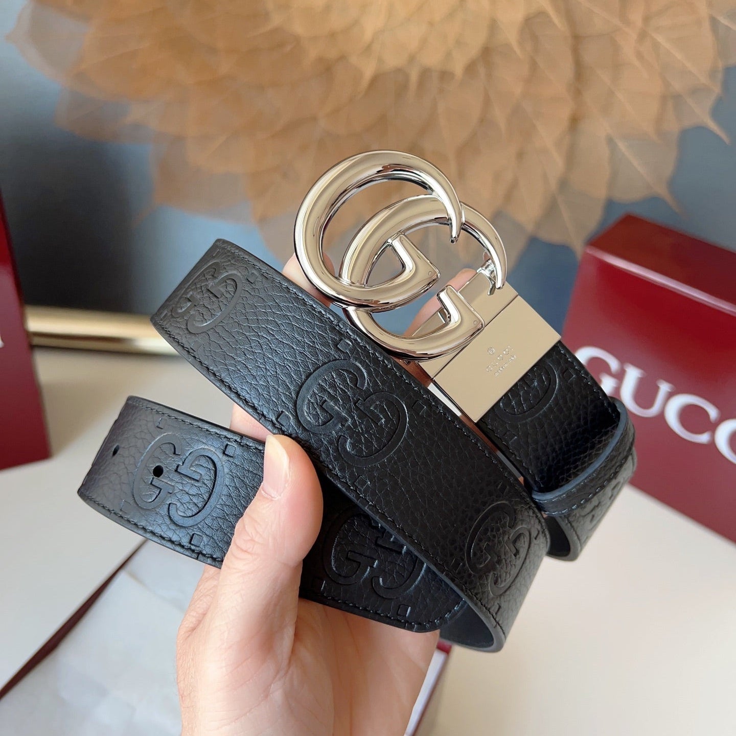 DOUBLE G MARMONT SHINY SLIVER BUCKLE 37MM BLACK EMBOSSED LEATHER