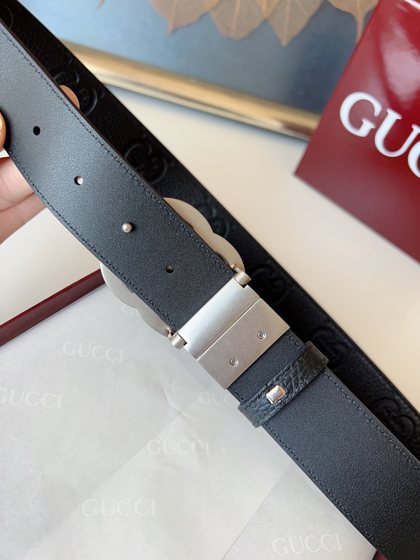 DOUBLE G MARMONT SLIVER BUCKLE 37MM BLACK EMBOSSED LEATHER