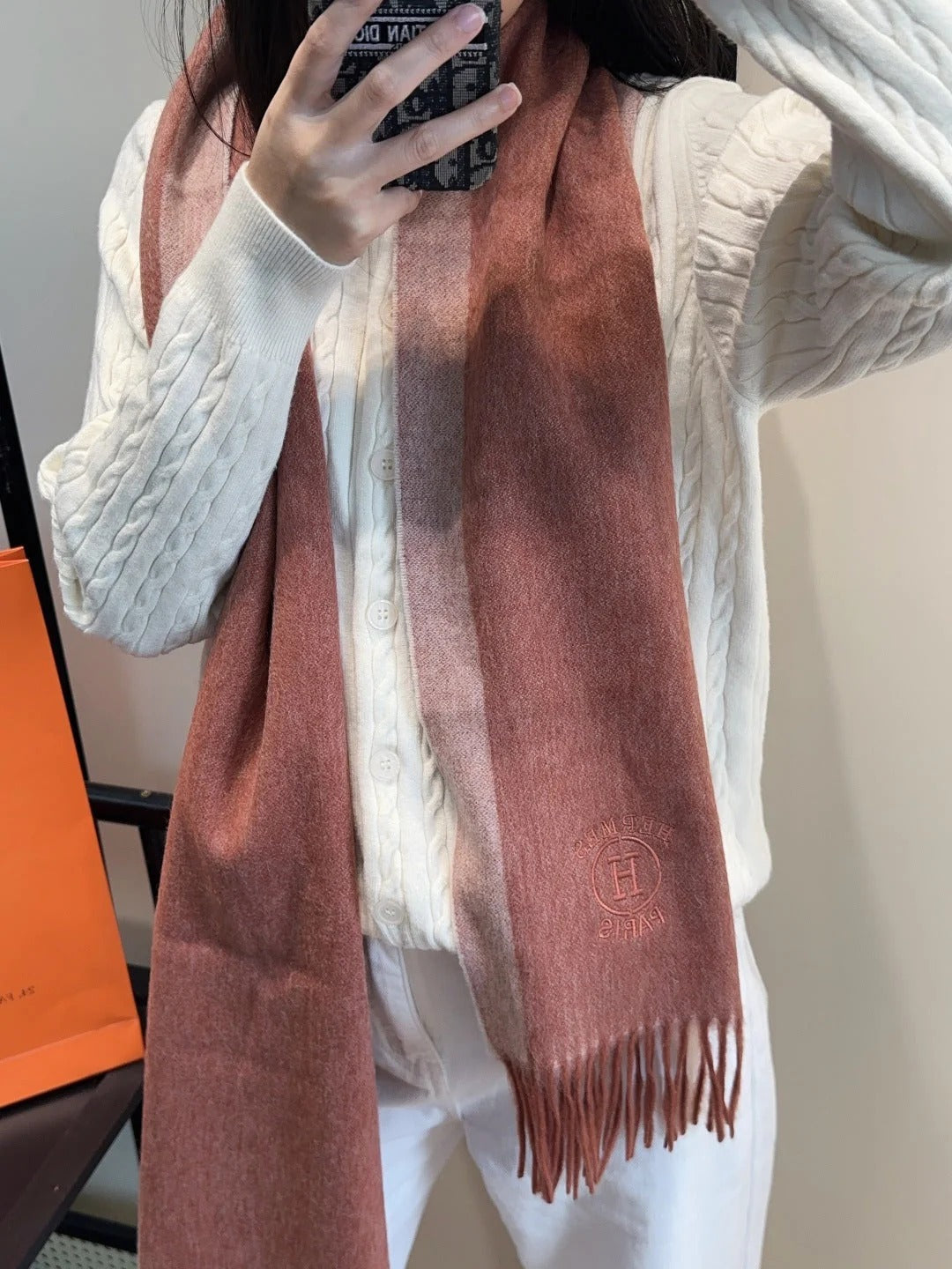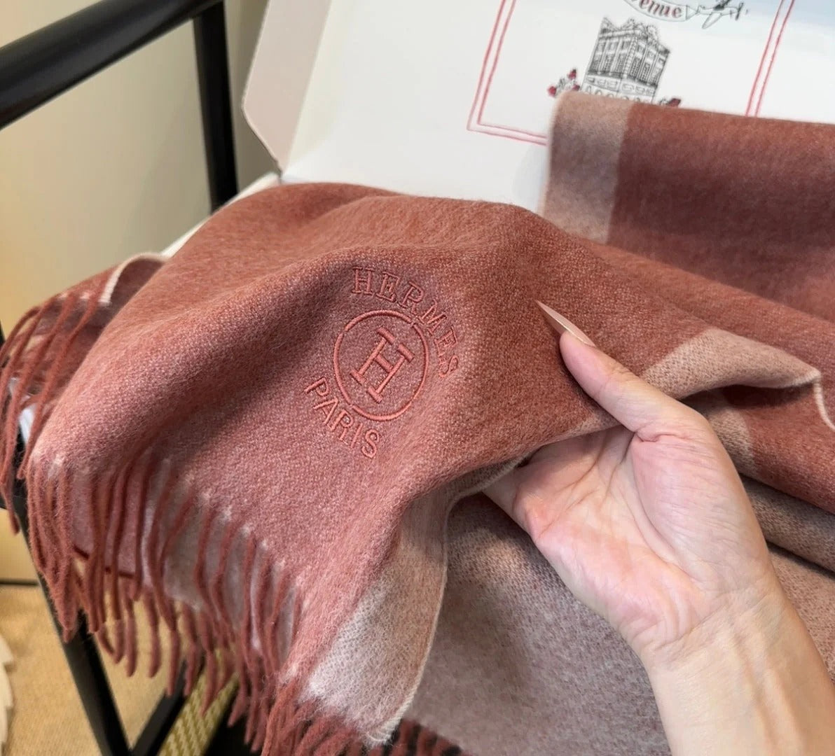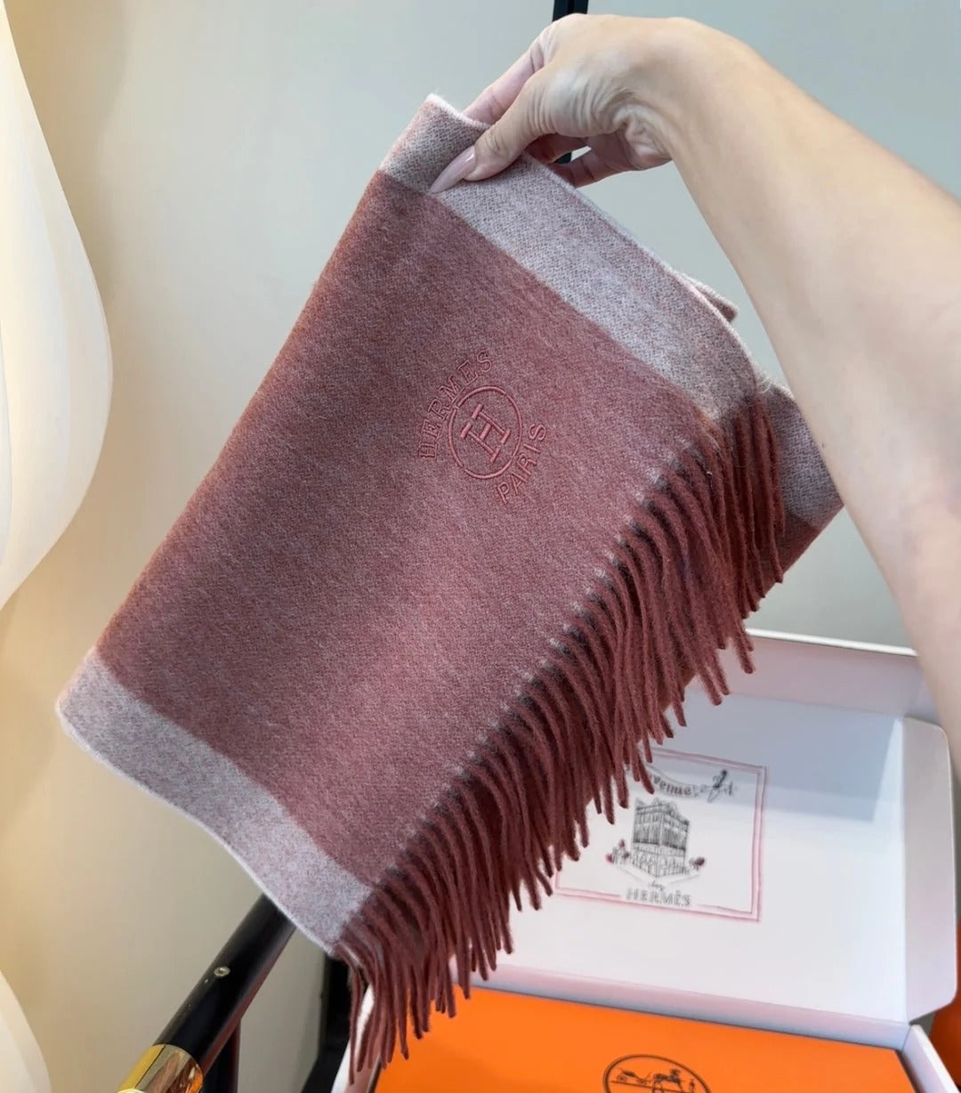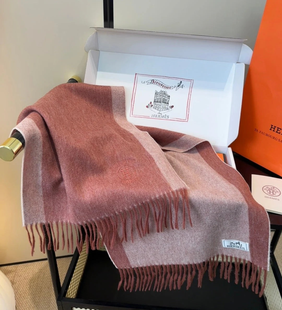 HERMES 25S SCARF 190 IN CASHMERE 854634