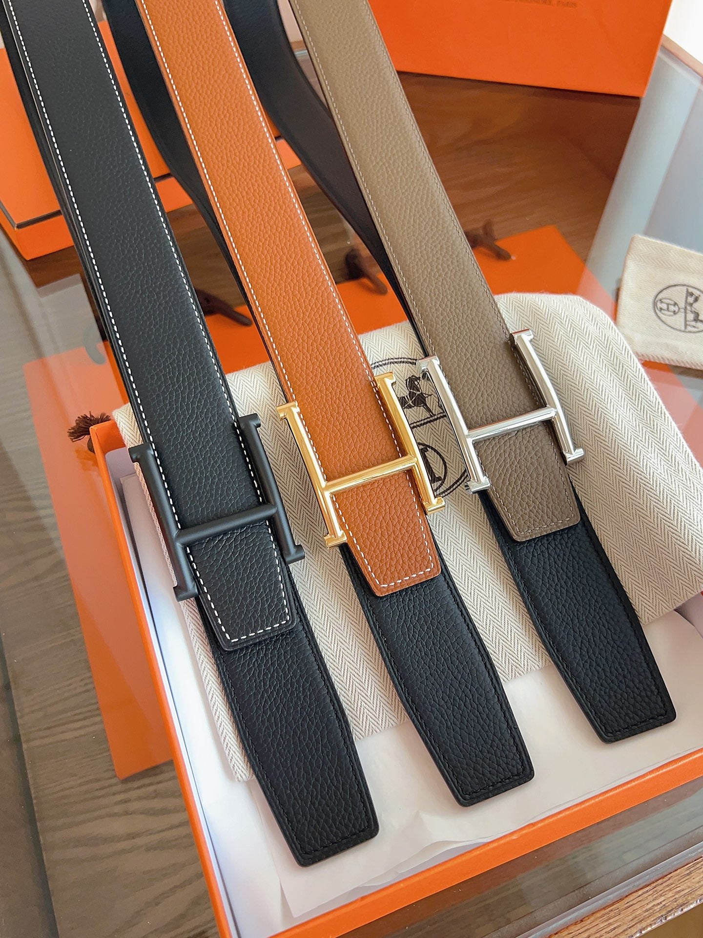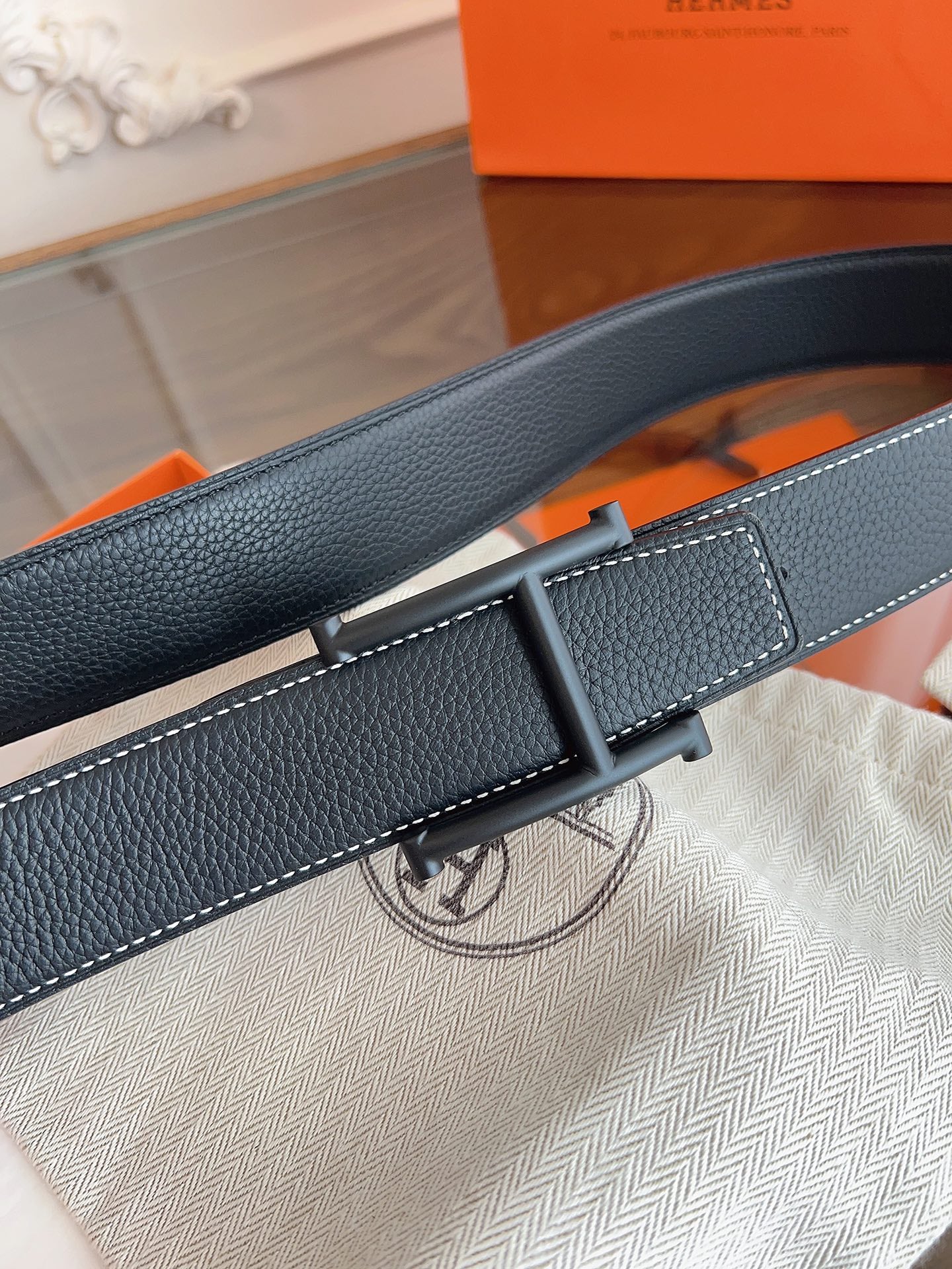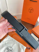 HM H d'Ancre Belt Black HW Buckle & Reversible Leather Strap Togo Lychee Cowhide