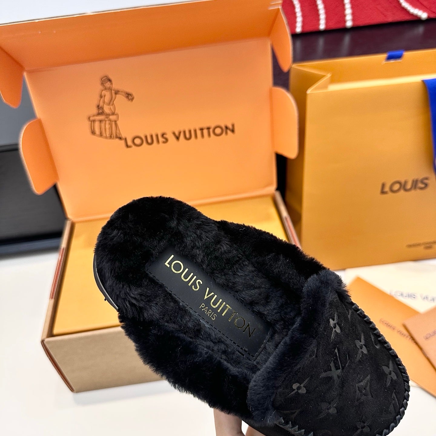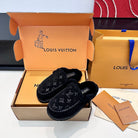 LV Ski Colorado Closed Mule Black Suede Wool 542228