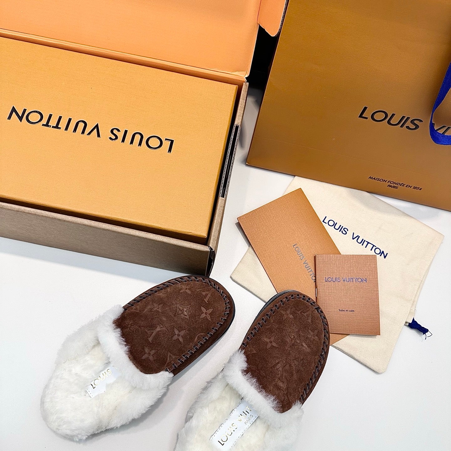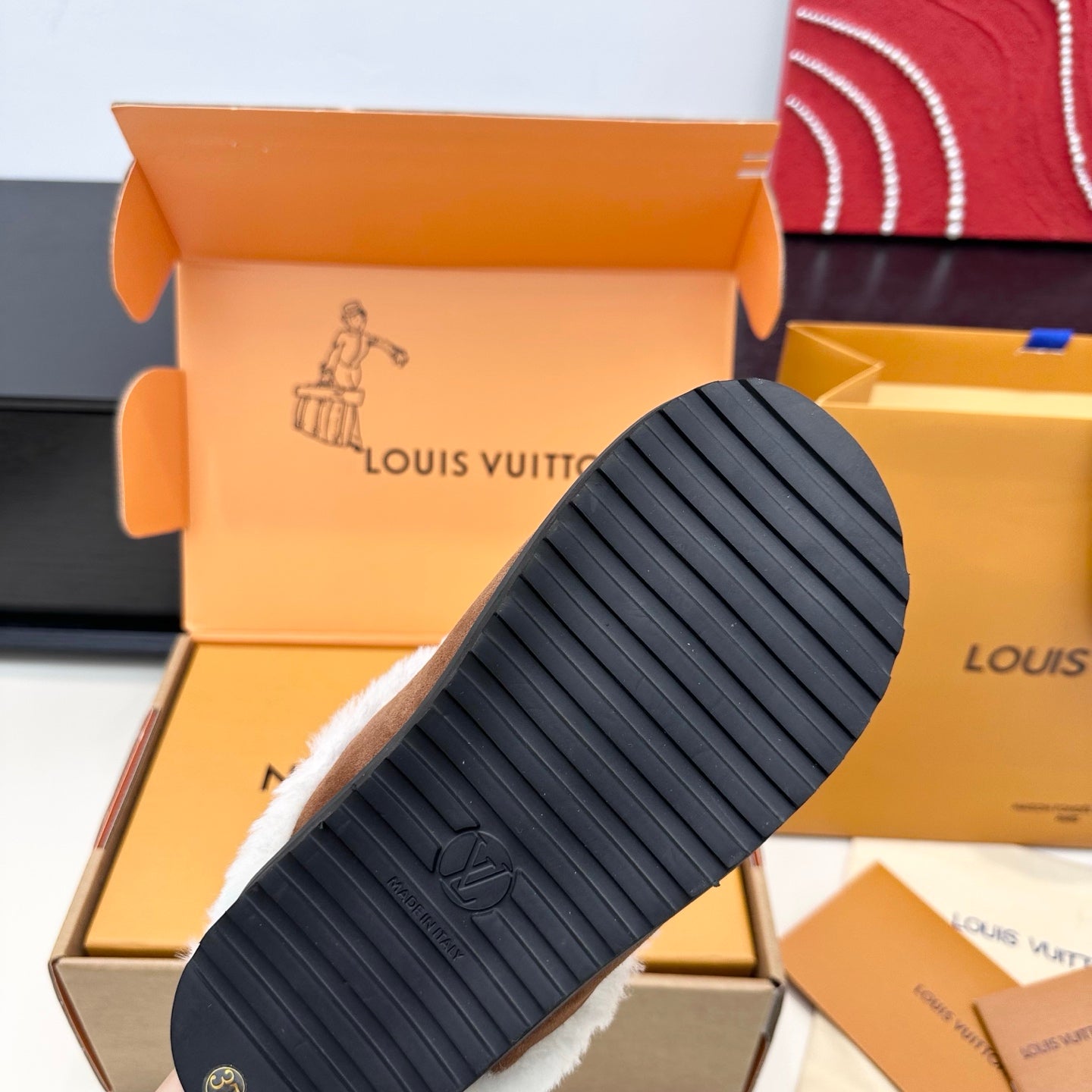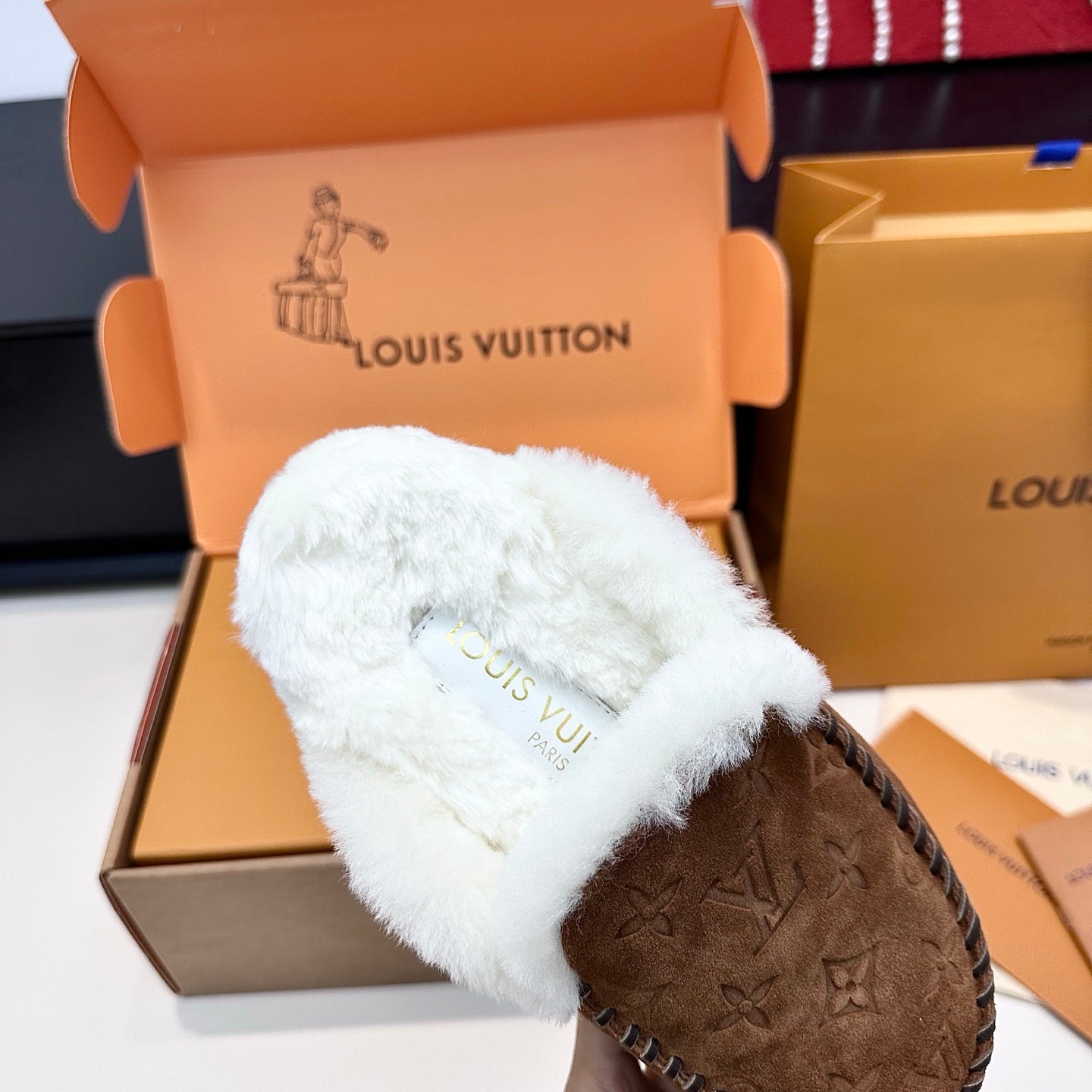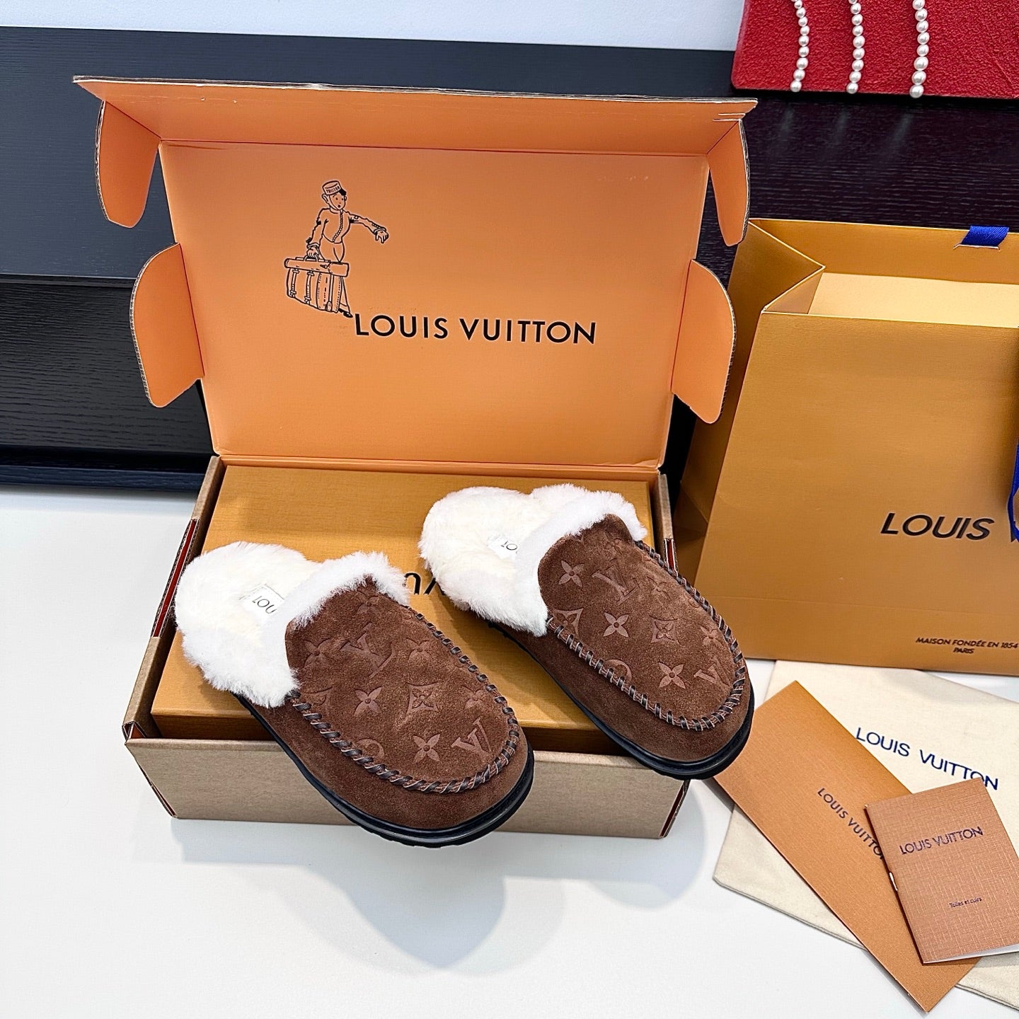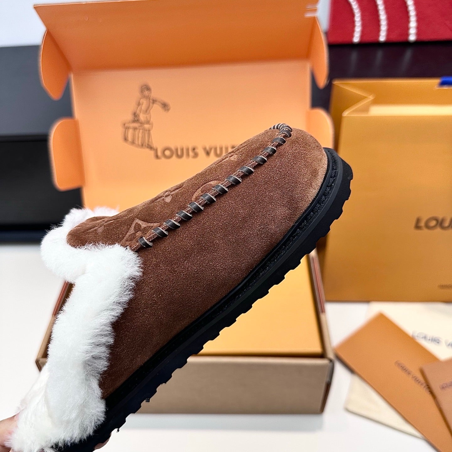 LV Ski Colorado Closed Mule Brown Chocolate Suede Wool 542229