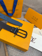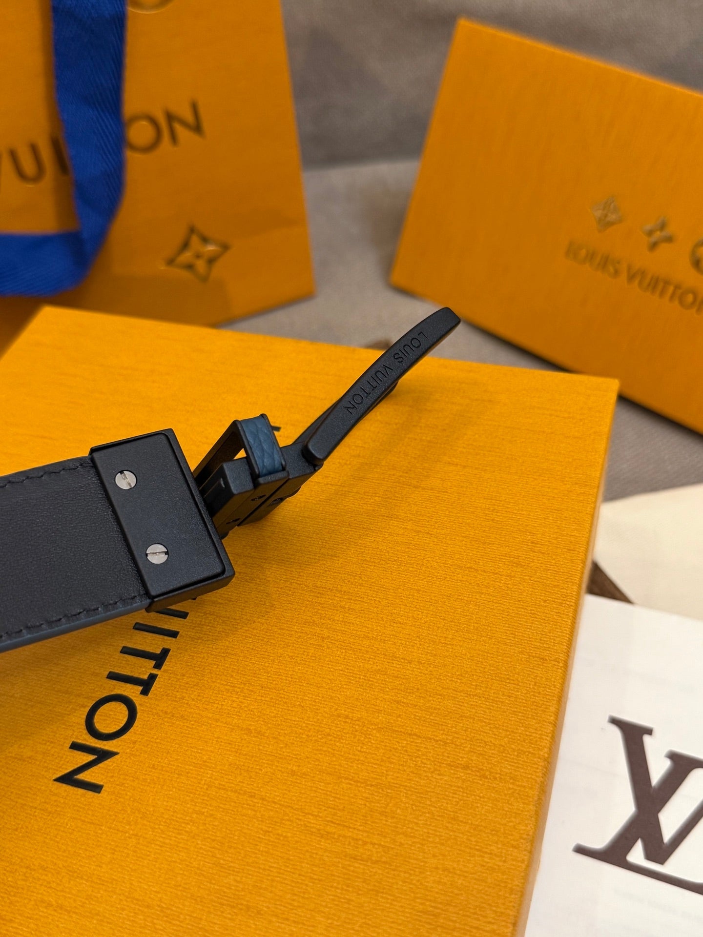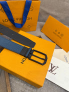 LV Slender Men Belt 35mm Deep Blue Embossed Monogram Leather Black HW