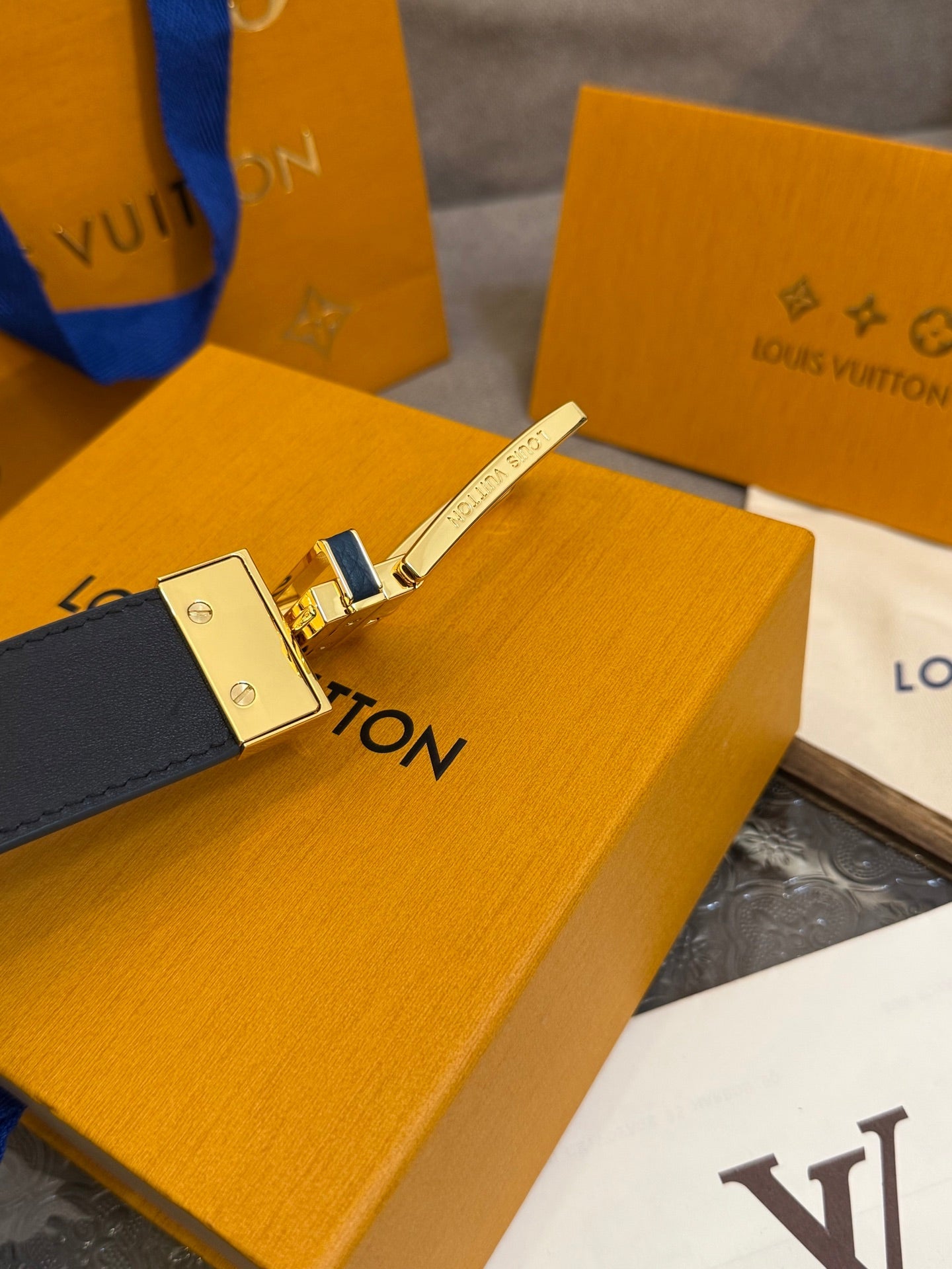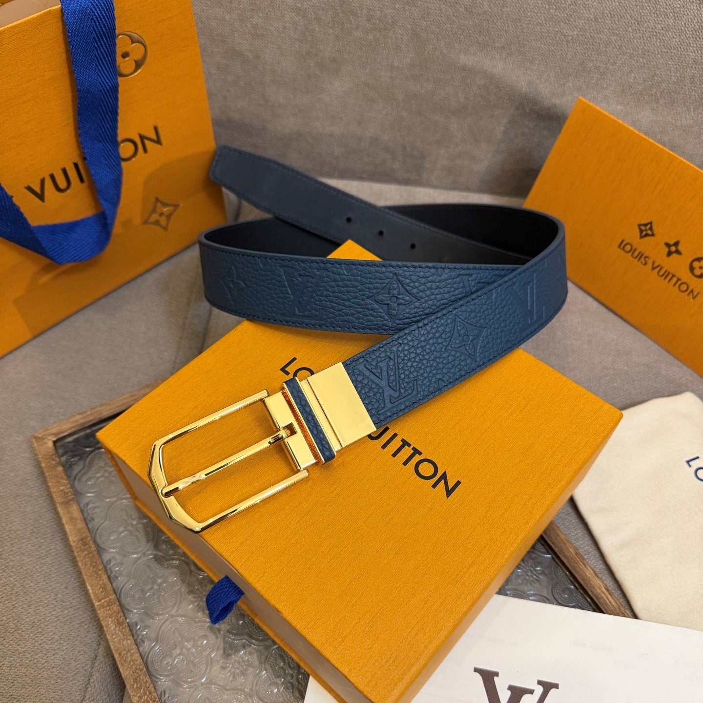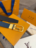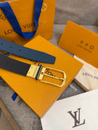 LV Slender Men Belt 35mm Deep Blue Embossed Monogram Leather Light GHW