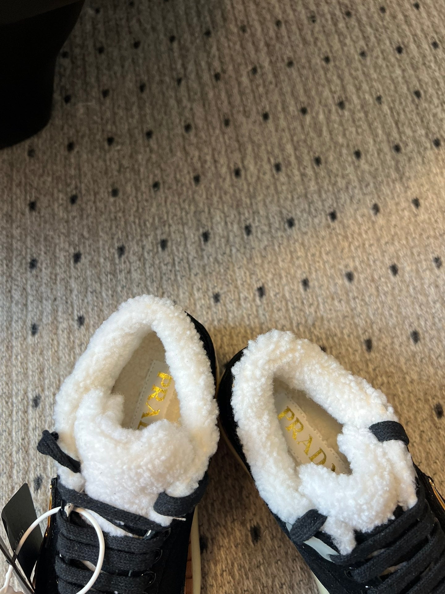 Prada 25s Mid-Top Sneaker Black Suede And Wool 538435