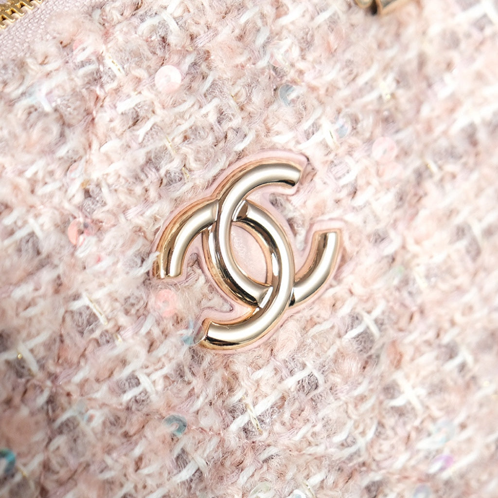 SMALL SHOPPING BAG 20 IN LIGHT PINK TWEED GOLD HARDWARE