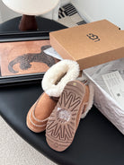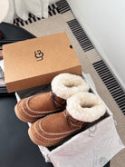 UGG Classic Ultra Mini Alpine Boots Brown White Wool Suede 508049